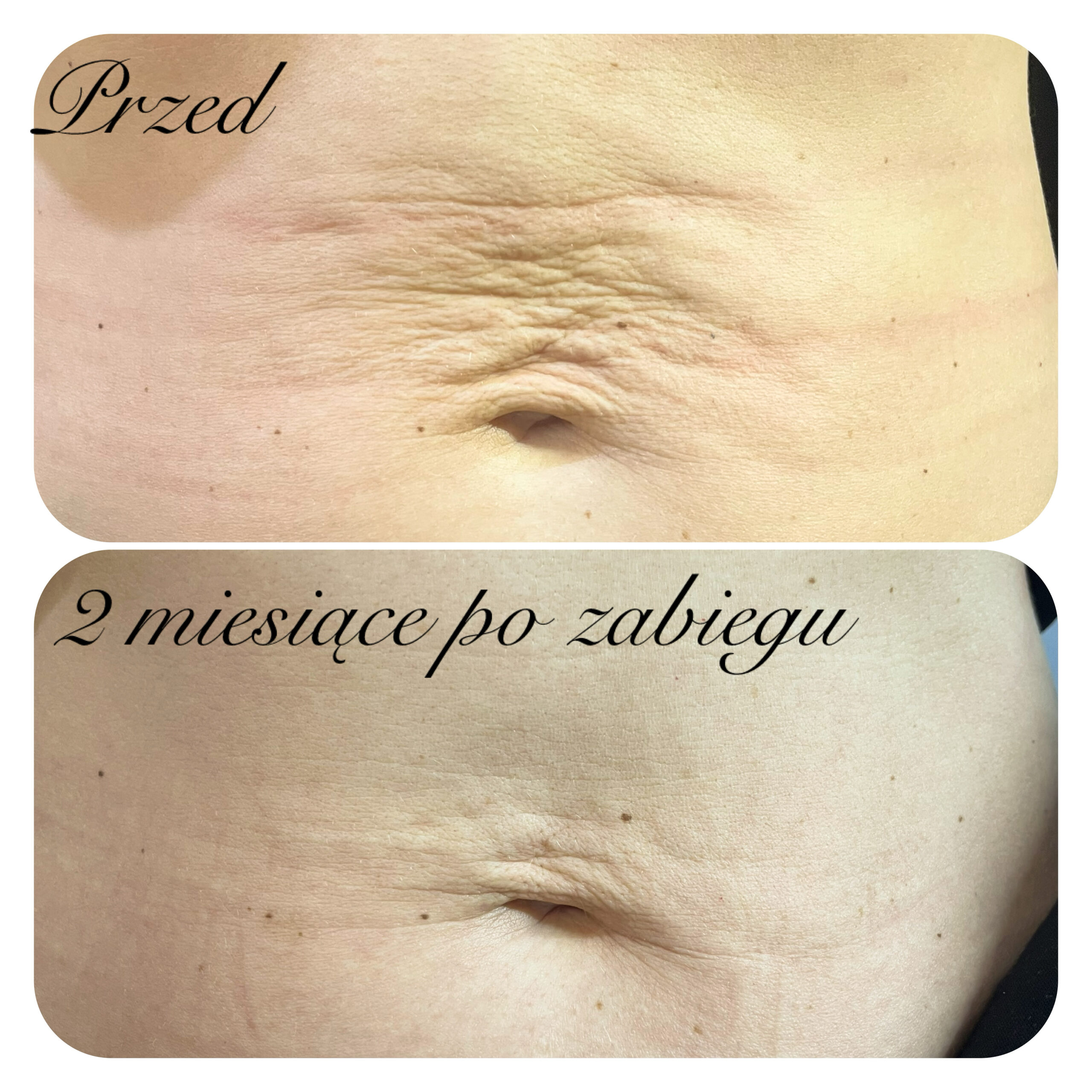 Zabieg z użyciem kwasu L-polimlekowego w okolicę brzucha. Wykonano 1 zabieg. Uzyskany efekt po 2 miesiącach od zabiegu.