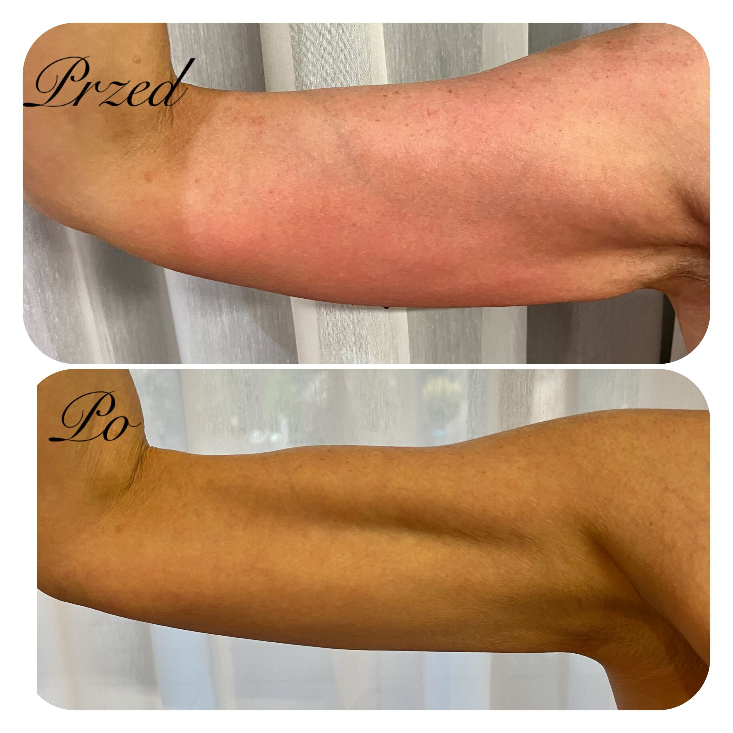 Zabieg z użyciem kwasu L-polimlekowego w okolicę ramion. wykonano 1 zabieg. Uzyskany efekt po 2 miesiącach od zabiegu.