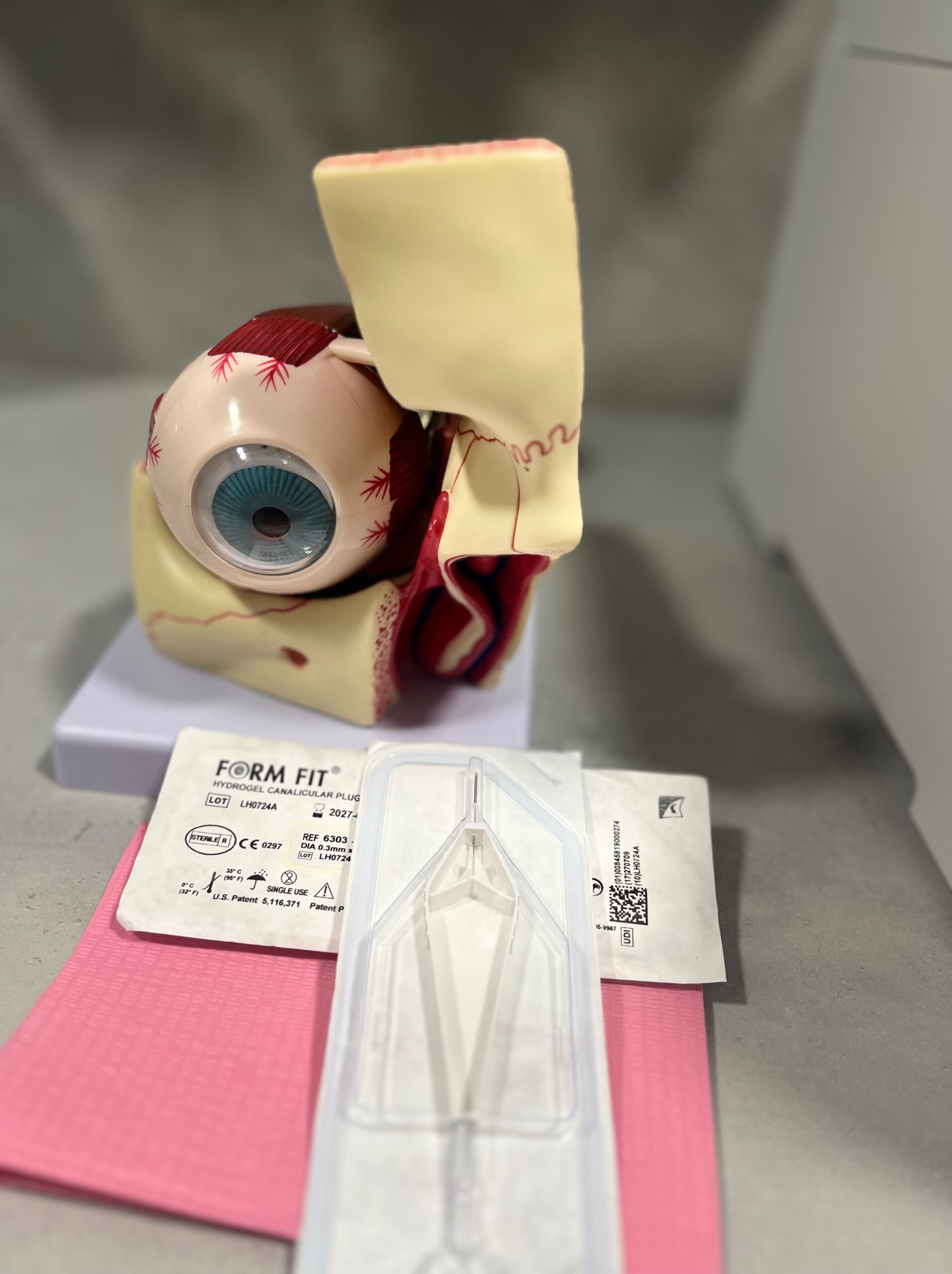 Okulista po uprzednim znieczuleniu oczu kroplami przy użyciu jednorazowych aplikatorów zakłada zatyczki do punktów łzowych. Aplikacja jest bezbolesna i małoinwazyjna.